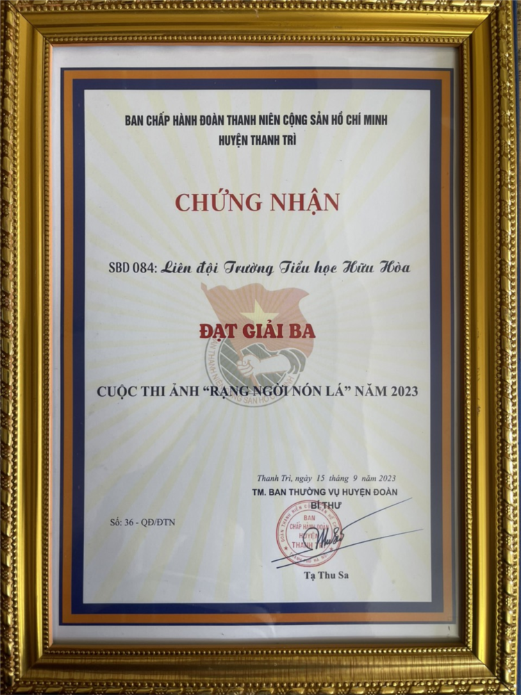 Tại Hội nghị, Trường Tiểu học Hữu Hòa vinh dự được nhận Giải bình chọn và Giải Ba cuộc thi ảnh “Rạng ngời nón lá” trong số 108 bài dự thi gửi về ban tổ chức, lựa chọn 84 bài tham gia vòng thi bình chọn cấp huyện.