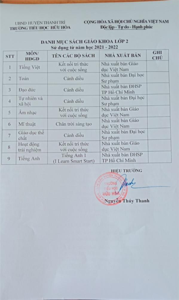 DANH MỤC SÁCH GIÁO KHOA LỚP 2