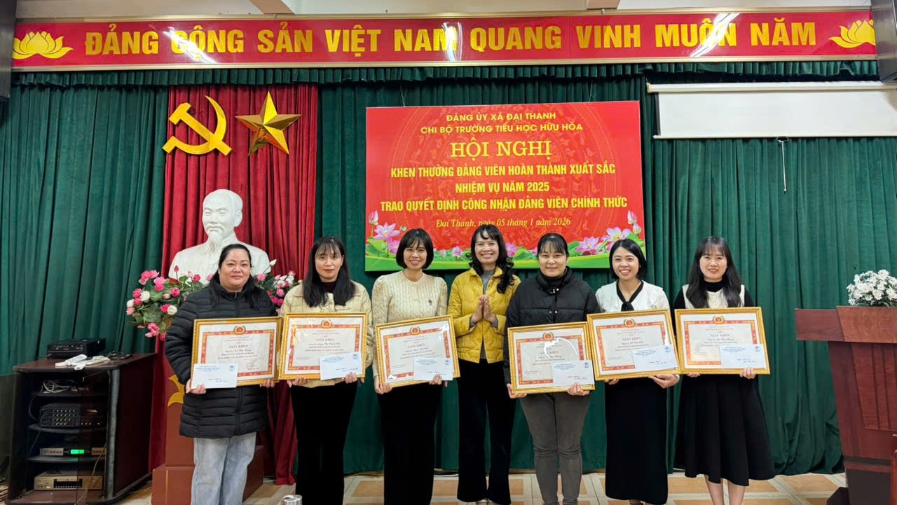 Ngày 5/1/2026, Chi bộ Trường Tiểu học Hữu Hòa long trọng tổ chức Hội nghị khen thưởng Đảng viên hoàn thành xuất sắc nhiệm vụ năm 2025 và trao Quyết định công nhận Đảng viên chính thức.