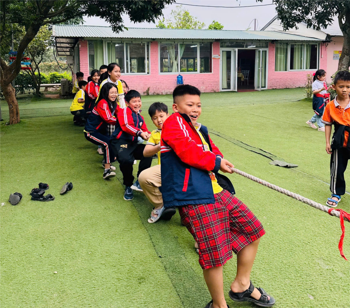 Các bạn học sinh Hữu Hòa được hòa mình với thiên nhiên, trải nghiệm các trò chơi thể chất