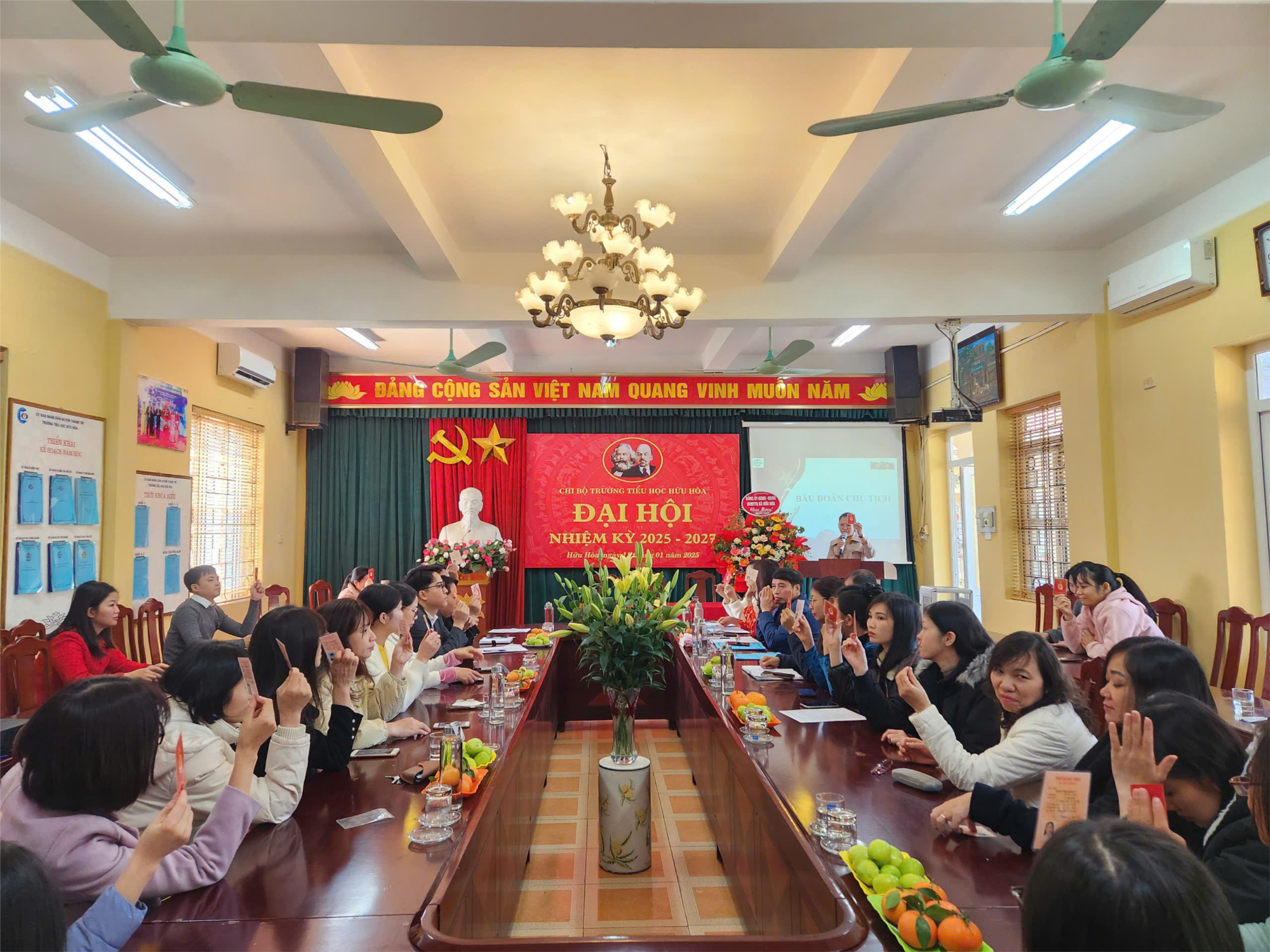 Chiều ngày 11 tháng 01 năm 2025, được sự chỉ đạo và nhất trí của Đảng ủy xã Hữu Hòa, Chi bộ Trường tiểu học Hữu Hòa long trọng tổ chức Đại hội Chi bộ, nhiệm kỳ 2025 - 2027. Đại hội có nhiệm vụ kiểm điểm, đánh giá kết quả công tác lãnh đạo thực hiện nhiệm vụ, nhiệm kỳ 2022 - 2025, đề ra phương hướng nhiệm vụ nhiệm kỳ 2025 – 2027; Bầu Chi ủy Chi bộ, Bí thư, Phó bí thư chi bộ nhiệm kỳ mới; bầu Đoàn Đại biểu đi dự Đại hội đại biểu Đảng bộ xã khoá XVIII nhiệm kỳ 2025-2030.