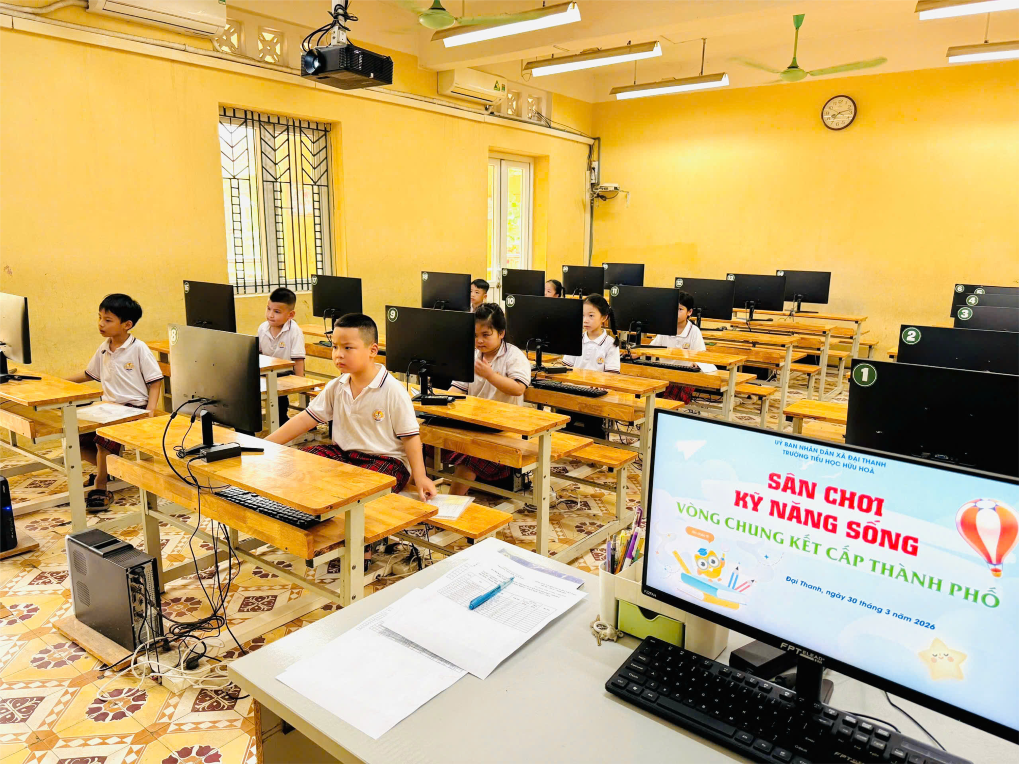 Chiều ngày 30/3/2026, Trường Tiểu học Hữu Hòa đã chính thức tham gia Vòng chung kết cấp Thành phố – Sân chơi Kỹ năng sống (KNS) với sự góp mặt của 46 em học sinh xuất sắc. Các em đã bình tĩnh, tự tin và nghiêm túc làm bài thi với sự tập trung, quyết tâm chinh phục những câu hỏi liên quan đến các chủ đề trong cuộc sống.