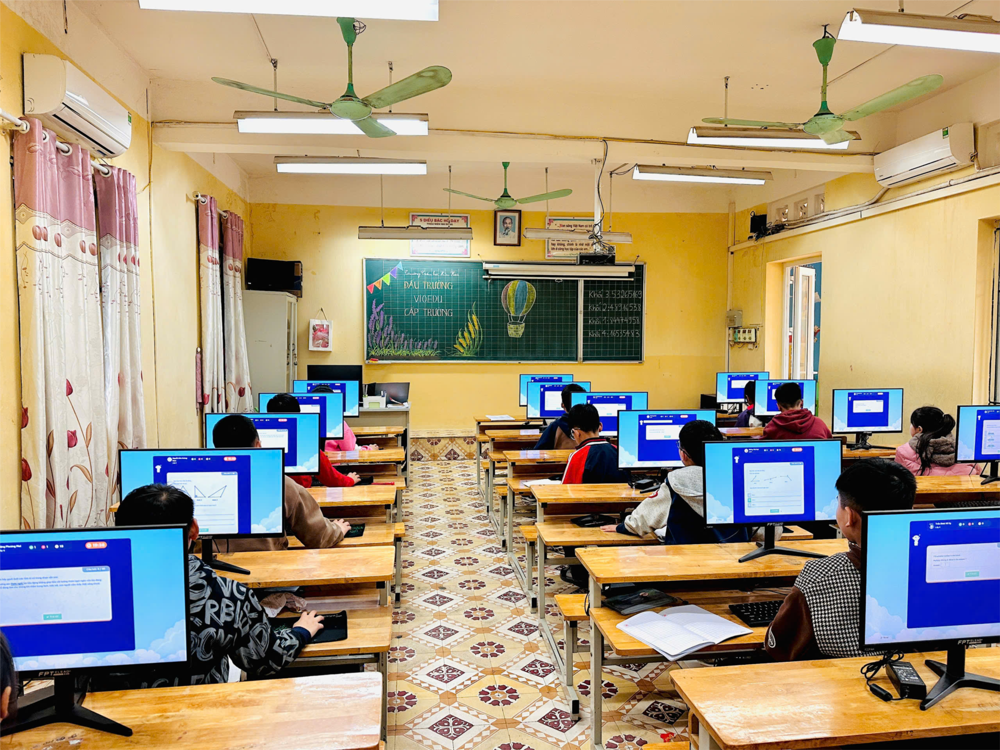 Các em học sinh có mặt trước 15 phút để đăng nhập tài khoản thi