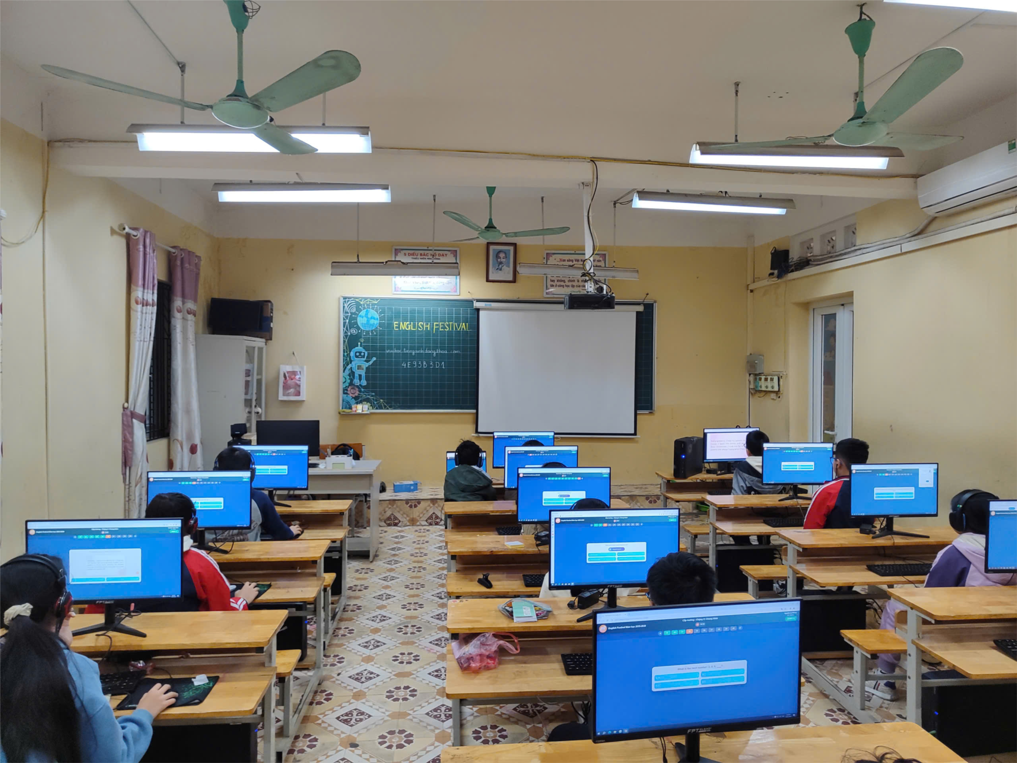 Sau khi vượt qua Chặng 1 – vòng Sơ khảo cấp trường, các “chiến binh English” của Hữu Hòa tiếp tục bước vào Chặng 2 – Vòng Chung khảo cấp trường với tinh thần sẵn sàng bứt phá. Tại vòng thi này, các em học sinh làm bài trực tiếp trên máy tính với bộ đề do Trung tâm Ngoại ngữ Đăng Khoa xây dựng, gồm 100 câu hỏi trong thời gian 30 phút. Đề thi được thiết kế riêng theo từng khối lớp, bám sát chương trình Tiếng Anh Tiểu học, đảm bảo kiểm tra đầy đủ các kỹ năng, qua đó giúp học sinh thể hiện trọn vẹn kiến thức, năng lực của mình.