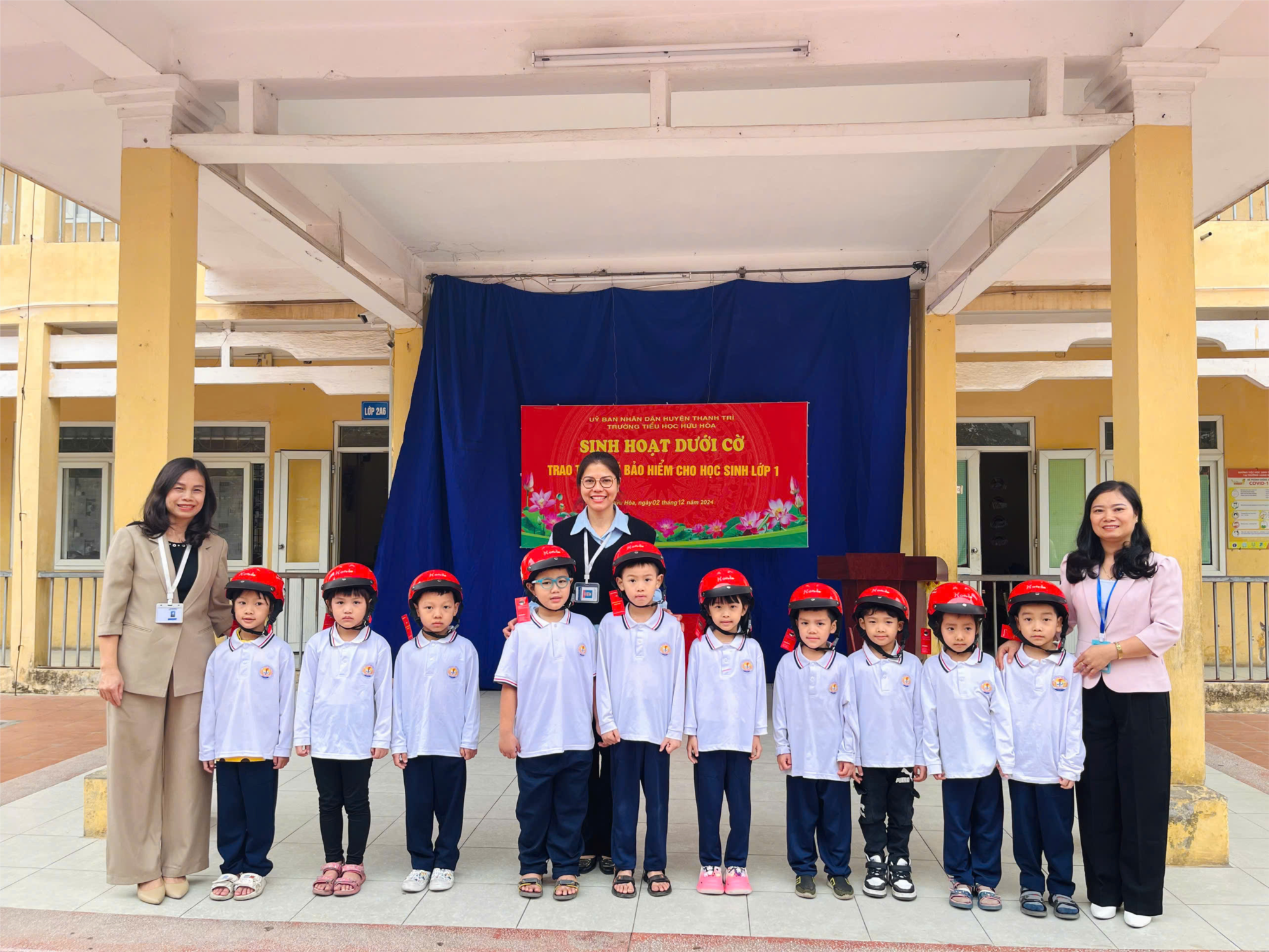 Với mục tiêu nâng cao ý thức về an toàn giao thông cho các em học sinh – thế hệ tương lai của đất nước, trong buổi sinh hoạt dưới cờ đầu tuần, ngày 02 tháng 12 năm 2024, trường Tiểu học Hữu Hòa phối hợp với công ty Honda Việt Nam triển khai chương trình "Trao tặng mũ bảo hiểm cho học sinh lớp 1”.