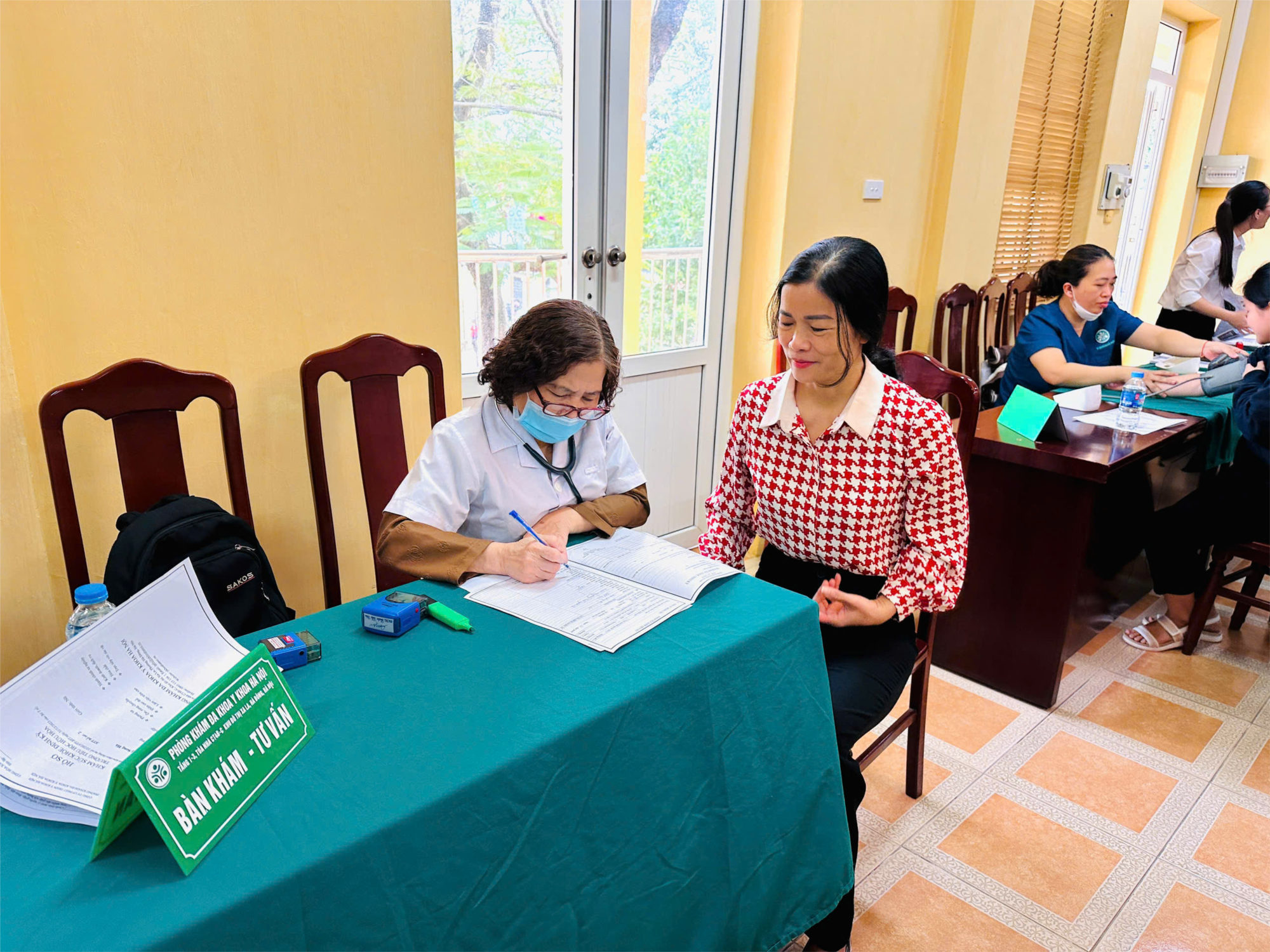Xuyên suốt buổi khám sức khỏe, đội ngũ y bác sĩ tận tình tư vấn, giải đáp mọi thắc mắc về sức khỏe và hướng dẫn CB-GV-NV cách duy trì thể trạng tốt trong quá trình làm việc và giảng dạy, từ đó tạo cảm giác thoải mái cho từng thành viên.