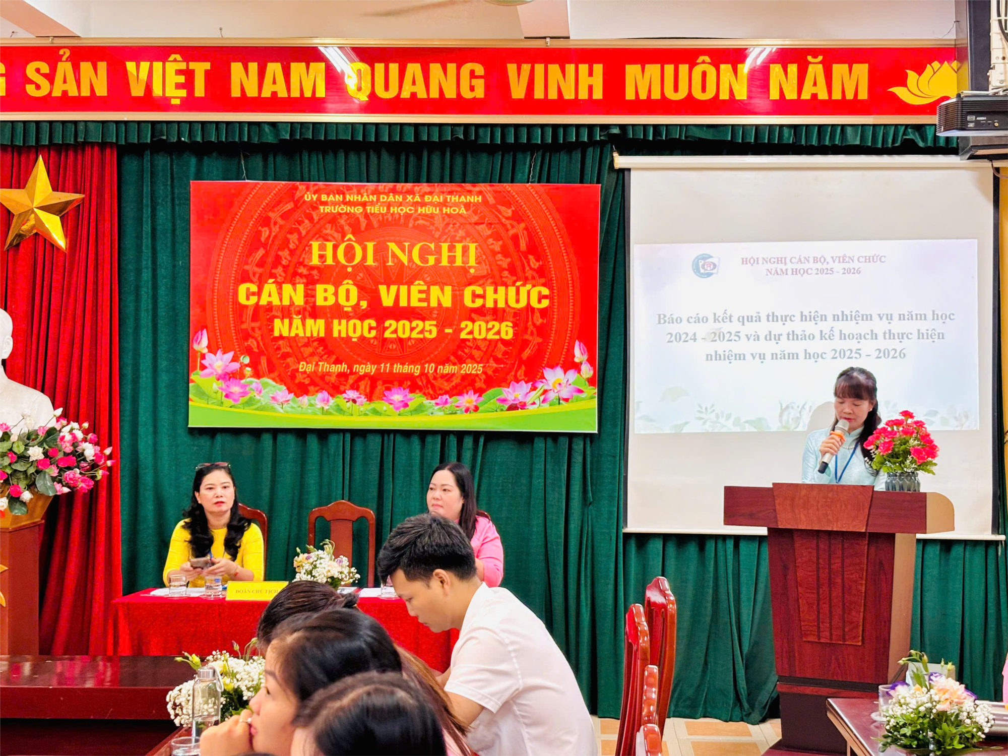Sáng ngày 11/10/2025, trường Tiểu học Hữu Hòa đã tổ chức thành công Hội nghị cán bộ, viên chức năm học 2025 – 2026.