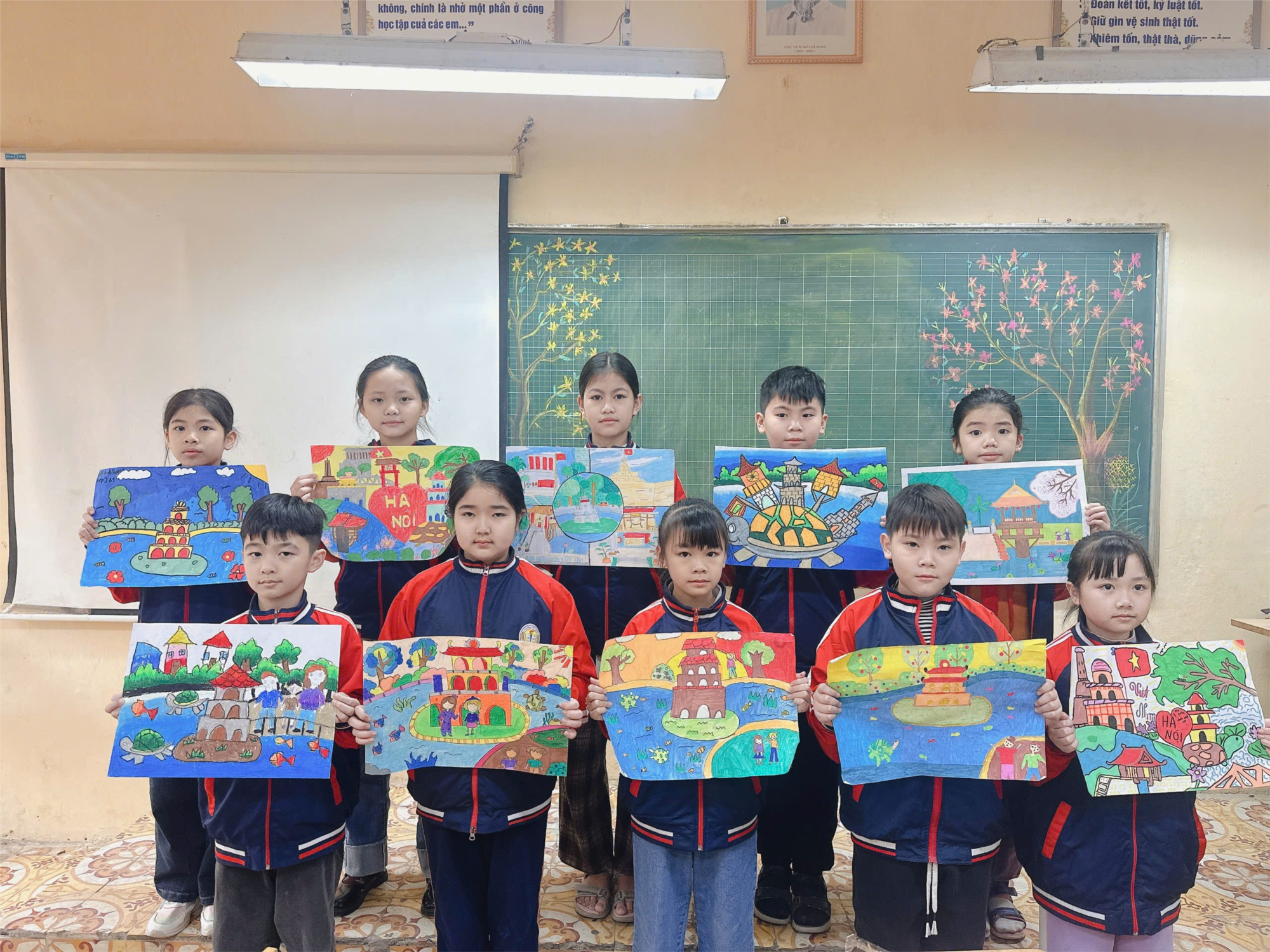 Dưới đây là các tác phẩm nằm trong top 10 cuộc thi vẽ tranh “Em yêu Hà Nội” cấp trường của các em học sinh. Hãy cùng nhìn ngắm các tác phẩm nhé!