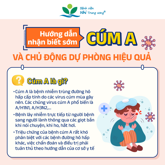 Số ca mắc cúm A đang có xu hướng gia tăng trong thời gian gần đây, đặc biệt ở trẻ nhỏ, trong đó có nhiều ca diễn biến suy hô hấp nặng, phải thở máy. Chính vì vậy, việc nhận biết sớm các triệu chứng của cúm A sẽ giúp cha mẹ có thể xử trí và đưa con đến bệnh viện thăm khám kịp thời, tránh các biến chứng nguy hiểm. Bên cạnh đó, phụ huynh cũng nên lưu ý rằng tiêm vắc xin vẫn là biện pháp phòng tránh hiệu quả nhất, giúp tạo “lá chắn” bảo vệ trẻ khỏi virus cúm A cũng như nhiều bệnh lý khác, nhất là trong thời điểm giao mùa, thời tiết thay đổi thất thường này.