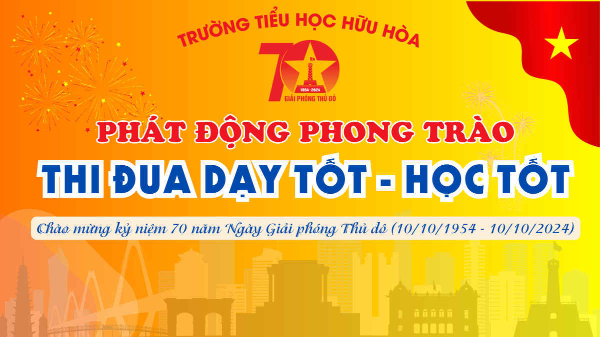 Hòa trong không khí thi đua lập thành tích hướng tới Chào mừng kỷ niệm 70 năm Ngày Giải phóng Thủ đô (10/10/1954 – 10/10/2024), Giải phóng Huyện Thanh Trì (06/10/1954 - 06/10/2024) trường Tiểu học Hữu Hòa phát động phong trào thi đua “Dạy tốt - học tốt” tới toàn thể các thầy, cô giáo và các em học sinh trong nhà trường.